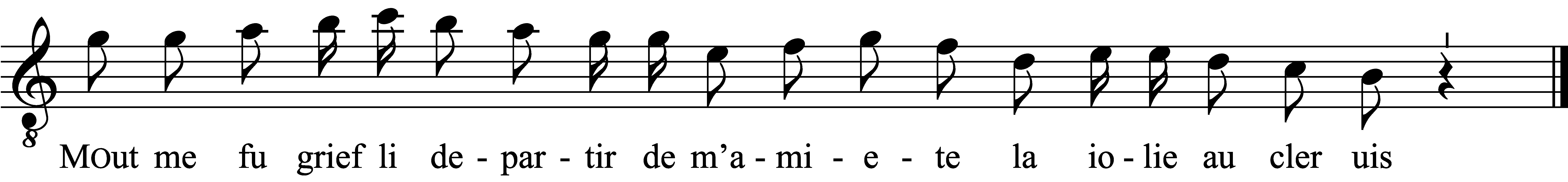 vdB 1346: Mout me fu griés li departir de m’amiete, la bele au cors gent. (Refrain)