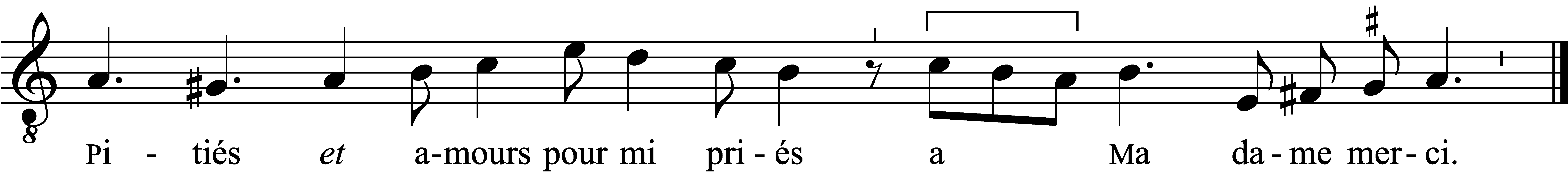 - Pitiés {et} amours pour mi priés a Ma dame merci.