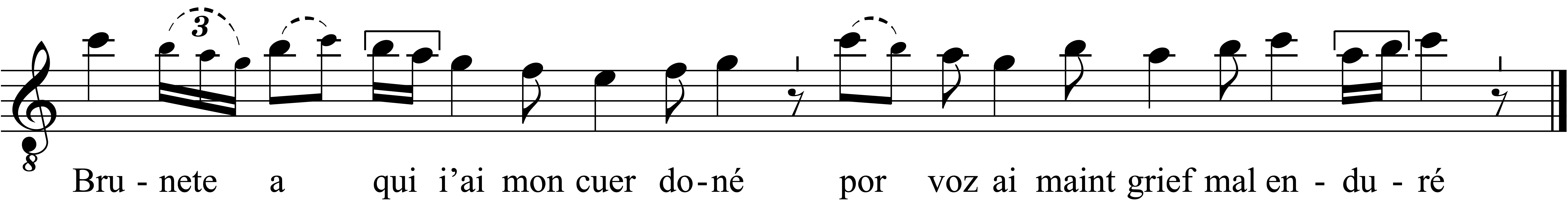 vdB 295: Brunete, a qui j’ai mon cuer doné, por voz ai maint grief mal enduré. (Refrain)