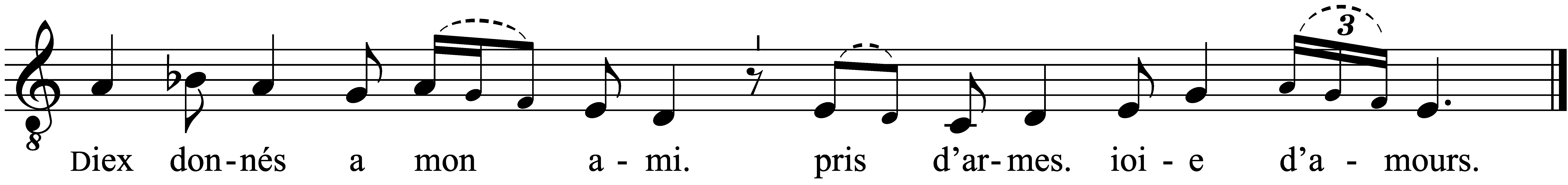 vdB 513: Diex, donnés a mon ami pris d’armes, joie d’amours. (Refrain)