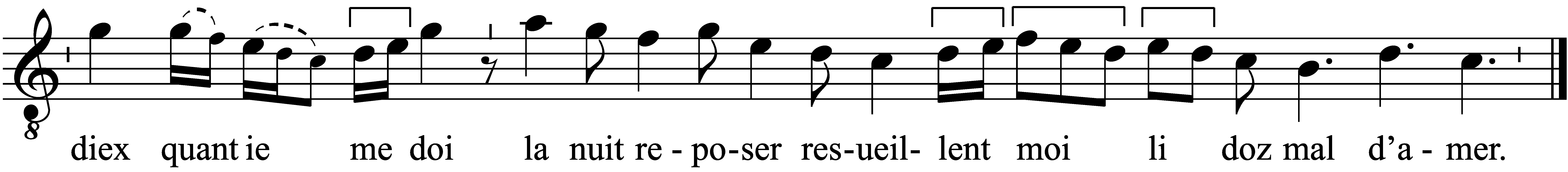 - diex quant ie me doi la nuit reposer resueillent moi li doz mal d’amer.