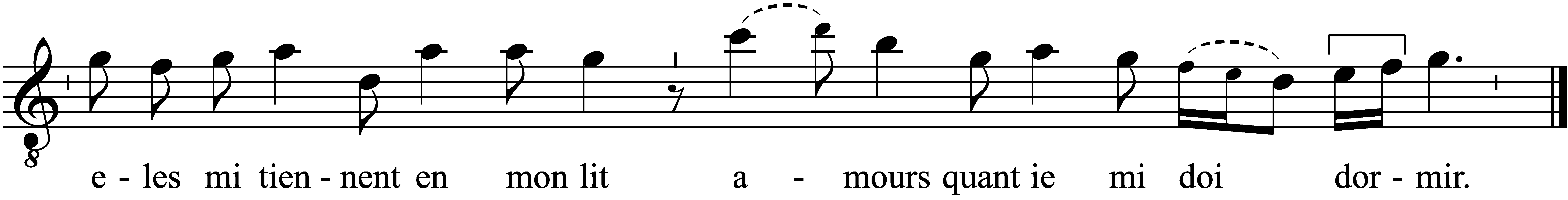 vdB 639: Eles me tienent en mon lit, amors, quant je me doi dormir. (Refrain)