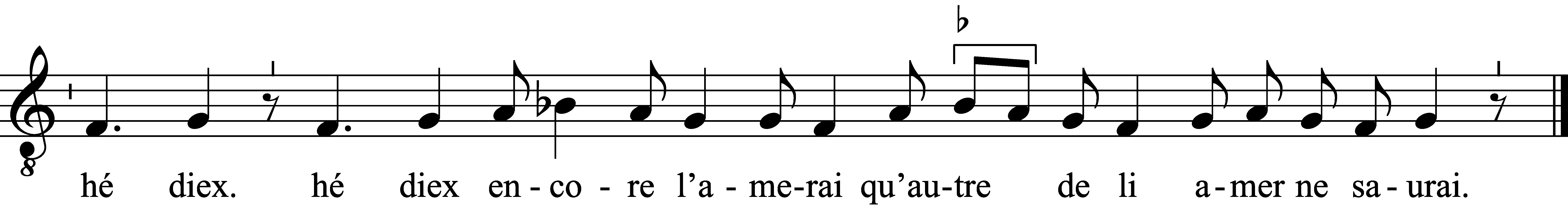 vdB 815: Hé, Diex, hé, Diex, encore l’amerai, qu’autre de li amer ne savrai. (Refrain)